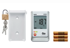 testo 175 T3 temperature logger, 2-channel temperature logger with external sensor connections (thermocouple type T and type K), including wall bracket, lock, batteries and calibration protocol. Caution: At least one external thermocouple probe (optional) must be connected to commission the temperature logger. In addition, you also need a USB cable (optional) in order to programme and read out your data logger. You can order both the probe and USB cable to go with your temperature logger. You can also transfer the measurement data to your PC using the USB cable (or with an SD card which is also available as an option).